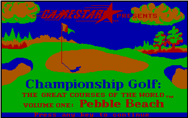 Championship Golf - The Great Courses of the World - Volume I Pebble Beach Game year 1986 Platform DOS GameType Retail How to play Each game uses different controls, most DOS games use the keyboard arrows. Some will use the mouse.